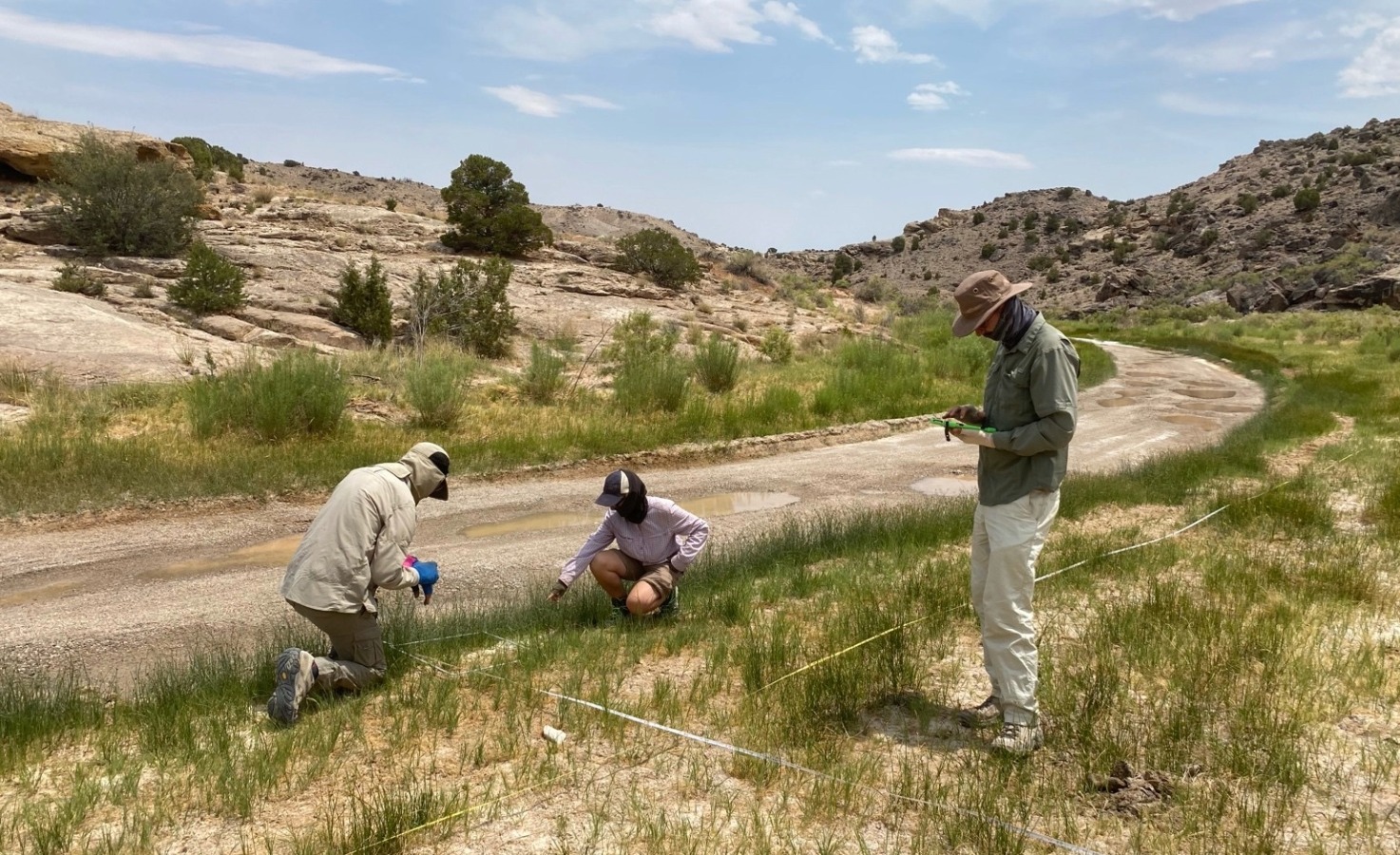 Ecologists and botanists investigate a seep and potential wetland area